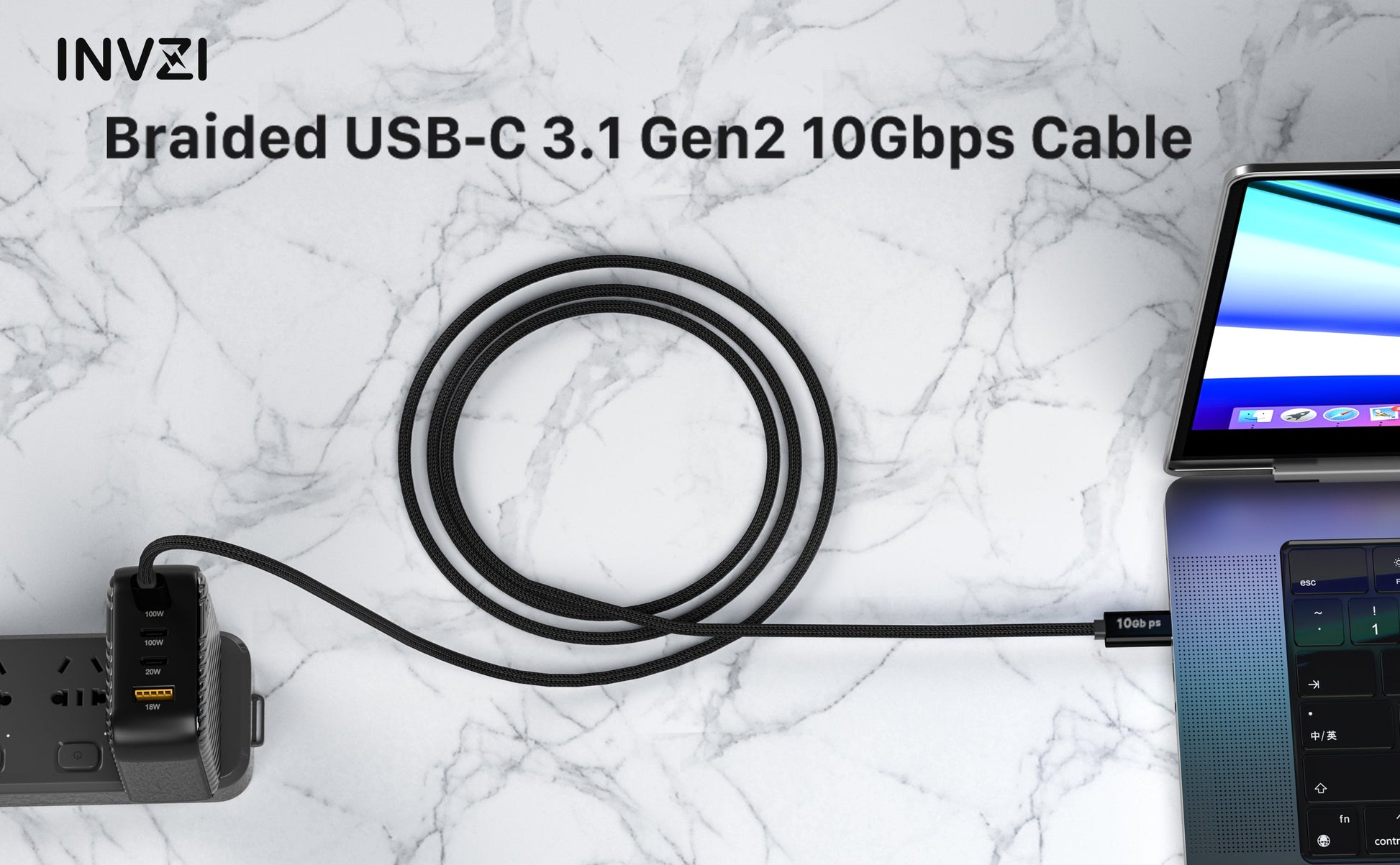 Upgrade your charging and data transfer experience with the INVZI 100W/10Gbps USB-C to USB-C Cable - where speed, power, and durability converge.