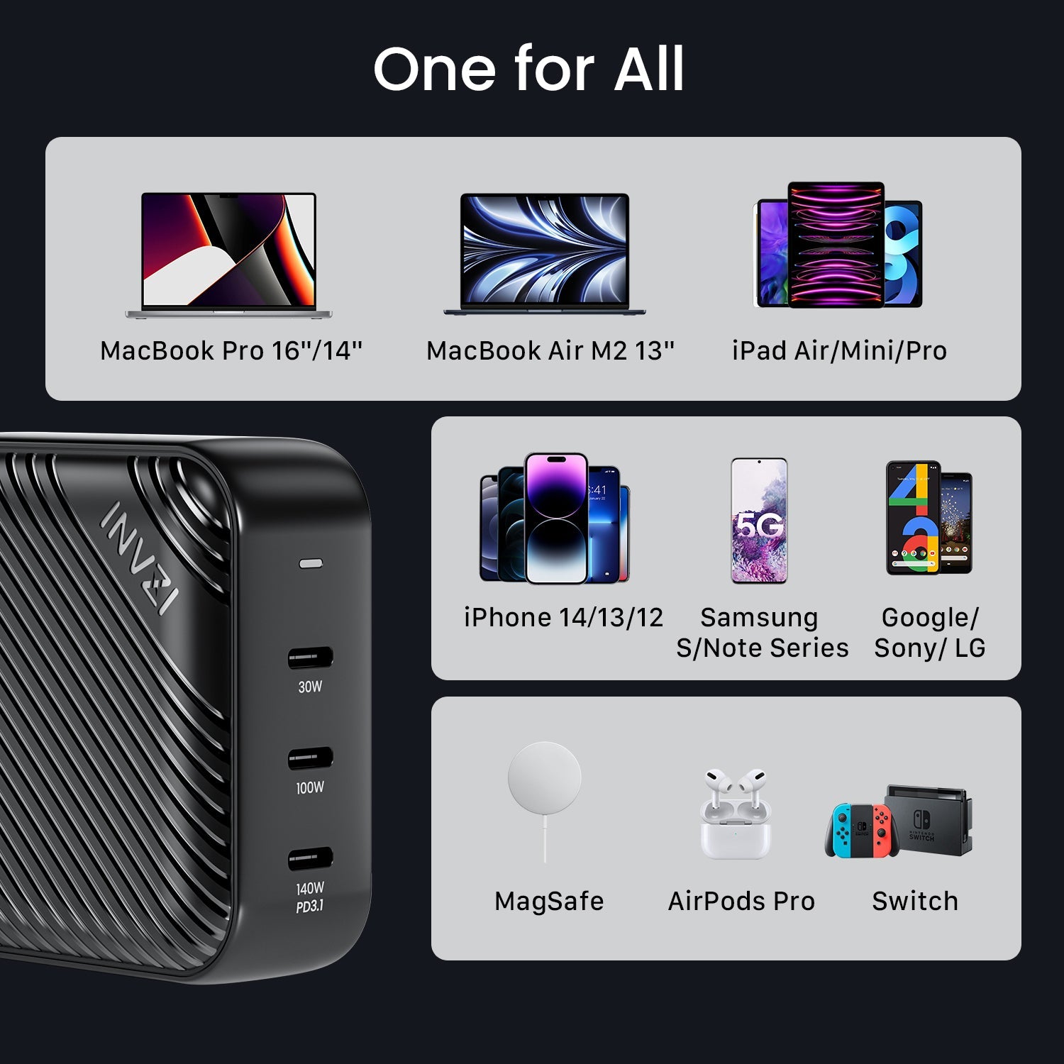 INVZI 140W Multi Port USB-C Fast Charger Adaptor