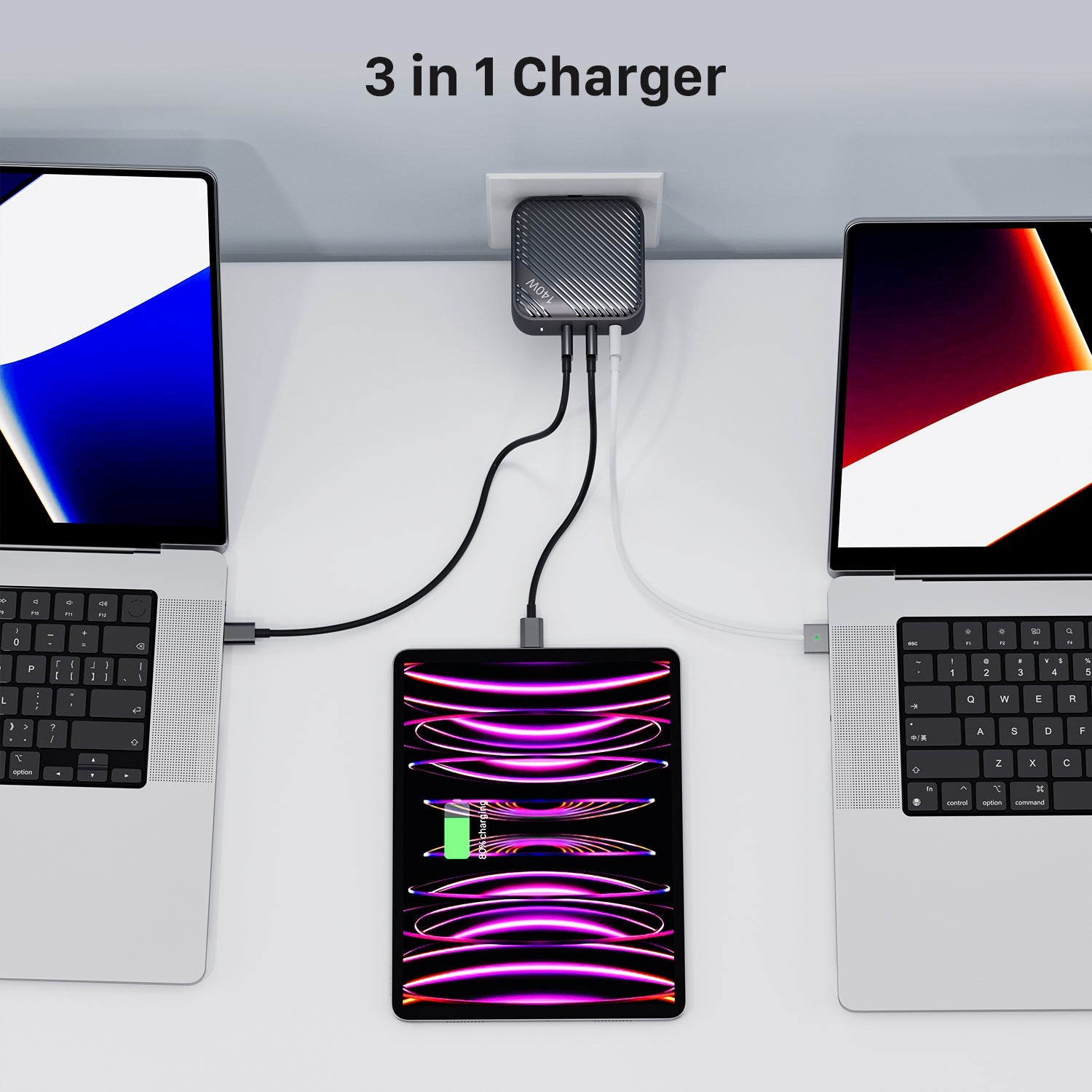 Designed for the multi-device user, the GaNHub 140W features three USB-C ports, allowing you to power up to two laptops and a phone simultaneously. Say goodbye to the hassle of carrying multiple chargers - the GaNHub 140W is your all-in-one charging solution.